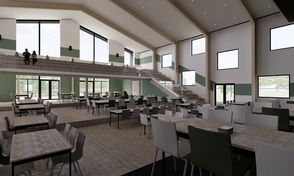 Het nieuwe schoolgebouw bestaat uit een centrale hal met daaromheen een zestal geschakelde gebouwen waar in alle rust onderwijs kan worden genoten. Het pand telt op enkele plekken drie lagen en is daardoor iets compacter dan het huidige gebouw, waardoor er meer mogelijkheden ontstaan voor de invulling van het terrein eromheen, zoals parkjes, zitjes en sportruimtes.